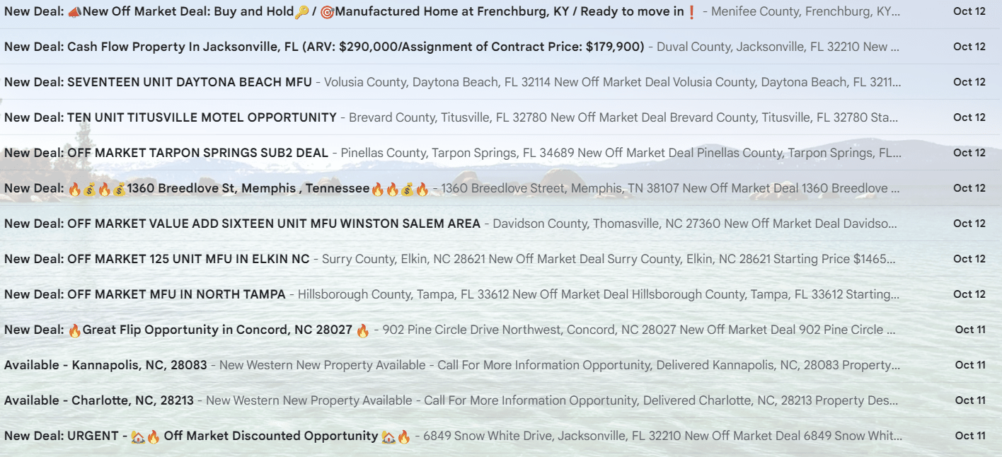 Within your first week of joining the program you will start being presented with exclusive off market deals.